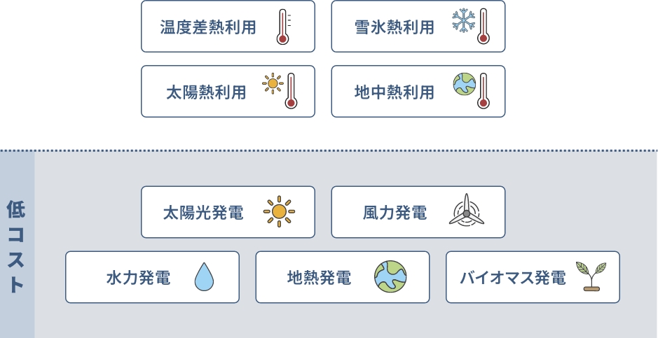 一方、昼夜問わず安定した発電が可能な中小水力発電や地熱発電の発電コストは依然として高い状況です。