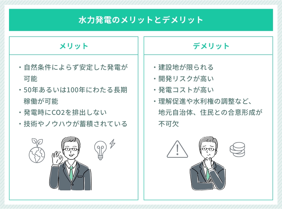 渇水リスクを除けば、自然条件によらず安定した発電が可能