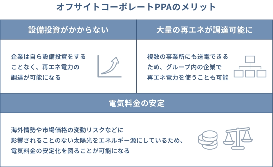 オフサイトコーポレートPPAは企業にとって3つのメリットがあります。