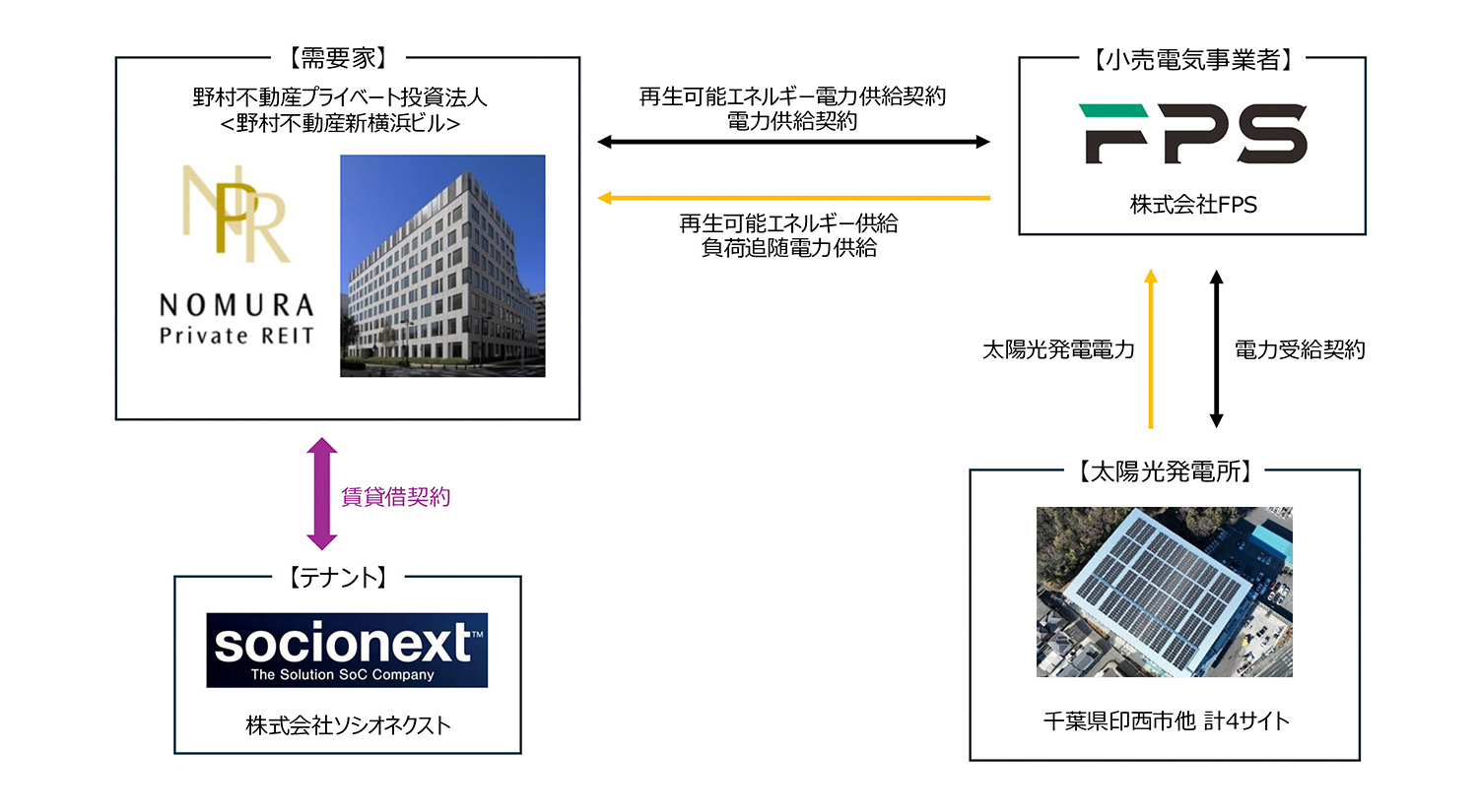 株式会社FPS(本社:東京都港区/代表取締役:洞 洋平、以下「FPS」)は2025年10月24日、野村不動産プライベート投資法人(本社:東京都港区/執行役員 須賀 智仁、以下「NPR」)およびシン・エナジー株式会社(本社:兵庫県神戸市/代表取締役社長:乾 正博、以下「シン・エナジー」)と、NPRが保有する「野村不動産新横浜ビル(以下「本物件」)」において、オフサイトフィジカルコーポレートPPA※1(以下「本PPA」)を締結いたしました。