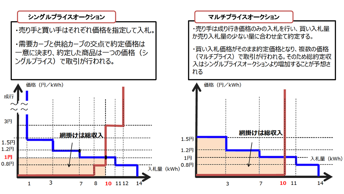FIT証書は再エネ価値取引市場においてマルチプライスオークションで取引されます。