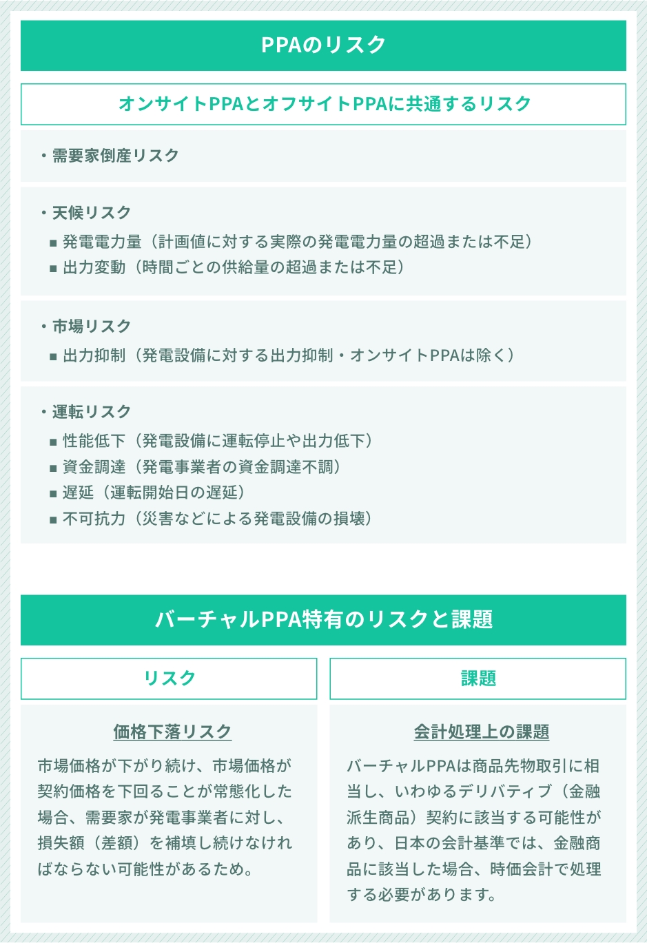 一方、PPA事業者が負担するリスクが増えるほど、契約単価は高くなります。企業においても、負担や協議が可能な事項がないのか、事前に検討することも重要です。